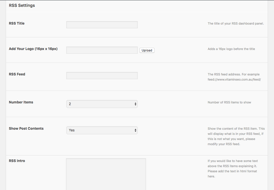 Upon selecting the last option, a new RSS Settings section will open.