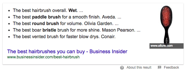 Hairbrushes are a type of product. If you’re selling them on your website, by recommending the best type, it will position your website as the expert on hairbrushes and therefore, the best to look at and buy this product from.